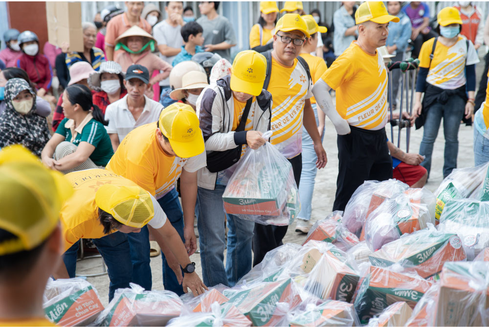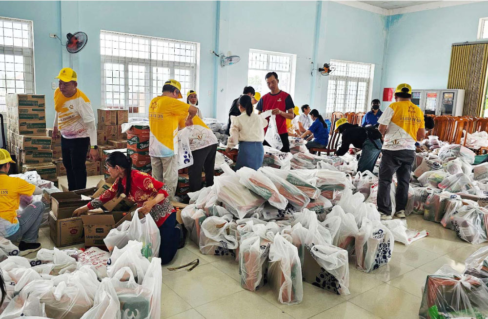 CLB Thiện nguyện Ấm Tình Yêu Thương và Trường Đại Học Hùng Vương Thành Phố Hồ Chí Minh (DHV) chuẩn bị các phần quà nhu yếu phẩm